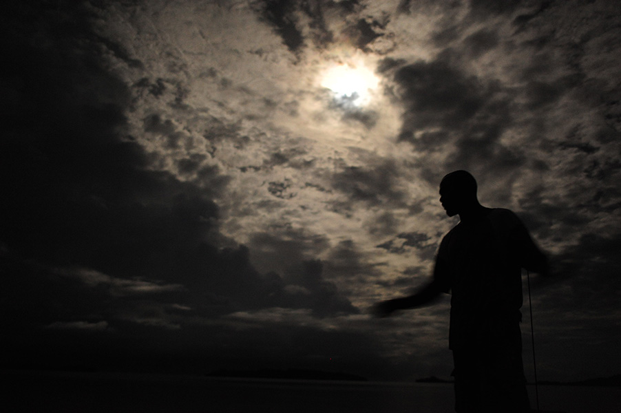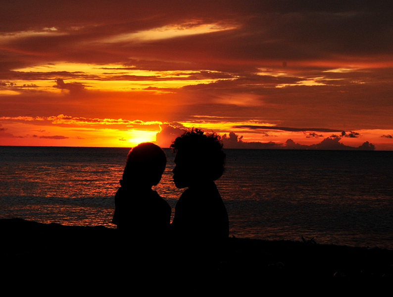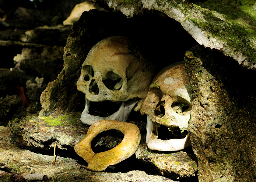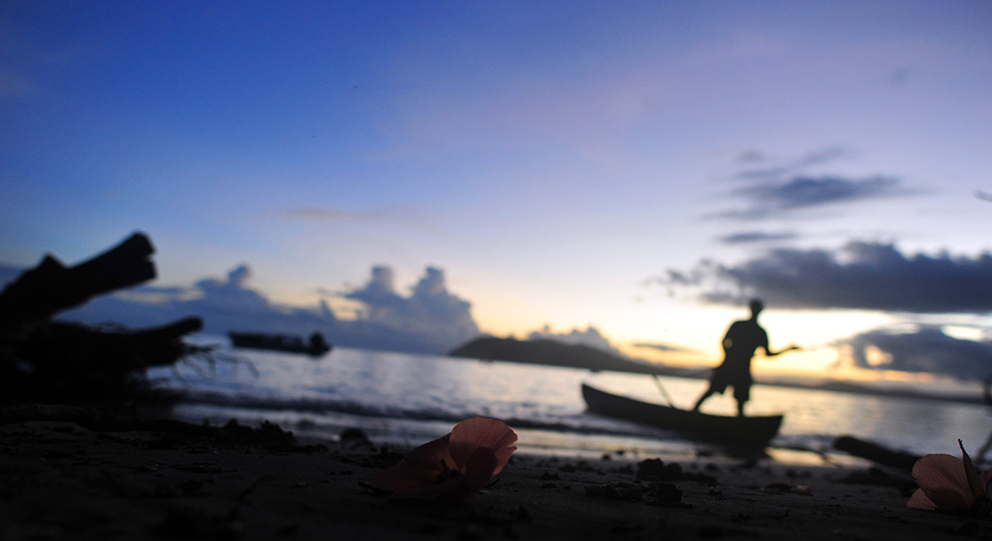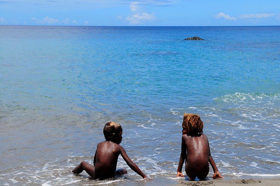 Tetepale Island, a paradise of nature. Dolphins always welcome us. The 30 years old hawksbill turtle is as big as a dog. Kids in Solomon are rebust. Skulls of beheaded tribal chief are nestled in a small shrine. A baby pig is so cute! Sleeping in the bush on hammock. Nature creates geometric shape. Being in silent. The sunlight reflects on mirror like sea-surface in dawn.